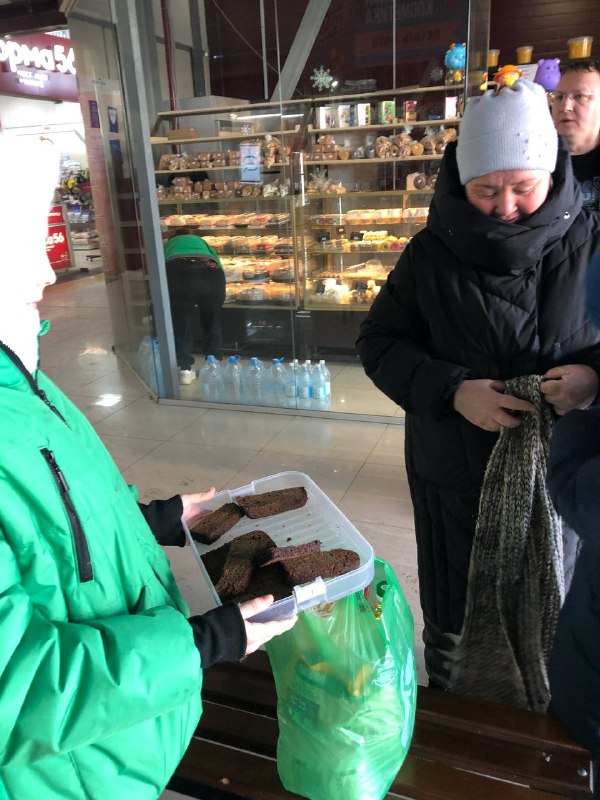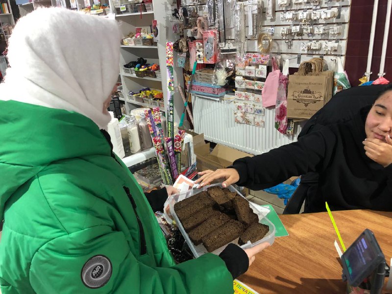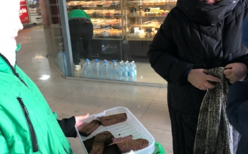 Ребята раздавали кусочек хлеба и листовки, содержащие краткие сведения о блокаде Ленинграда возле торговых точек с.Ивановки, п.Экодолья.